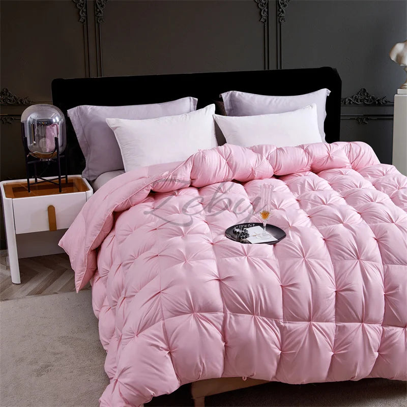 High Grade 100% White Goose Down Quilt Winter Warm Feather Duvet Queen King Cozy Lightweight 3D Bread Comforter Pinch Pleated